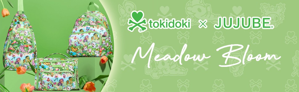 Meet Meadow Blooms: the newest limited-edition tokidoki × JuJuBe parenting bag collection.